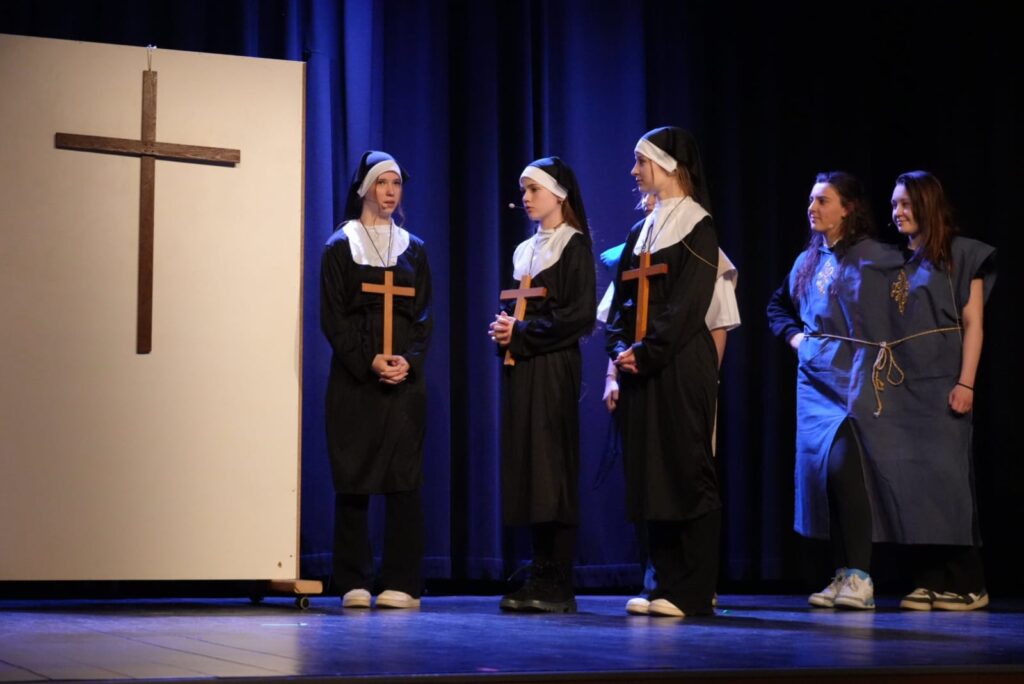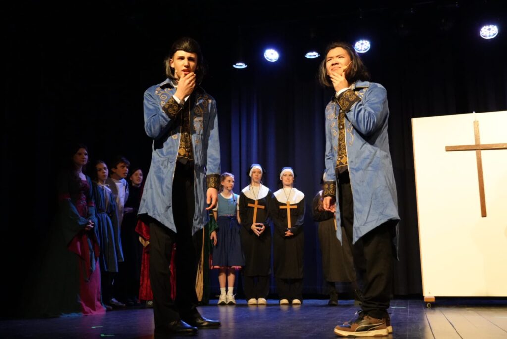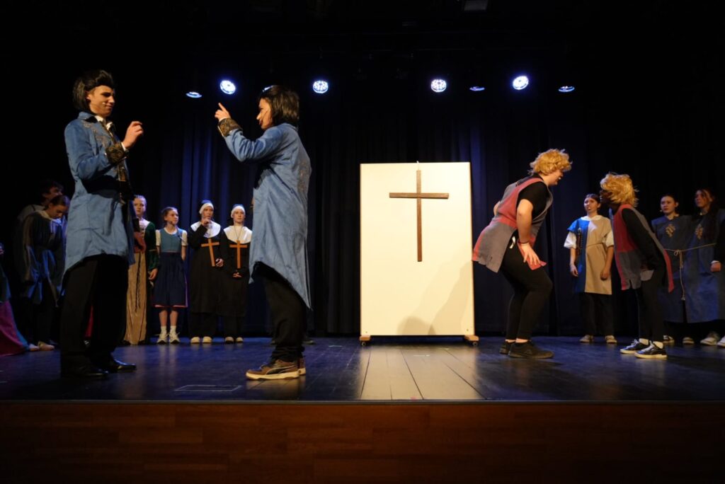 Nach der fulminanten Jubiläumsvorstellung im Vorjahr – gespielt wurde Peter Pan – war es wieder Zeit für eine Theatervorstellung der Slonisgarde. Und so kehrte die Gruppe mit William Shakespeares „Die Komödie der Irrungen“ in den Spiel!Raum Kapfenberg zurück. Unter der Regie von Corinna Harrer MA brillierten 22 Schülerinnen und Schüler von der zweiten bis zur siebten Klasse in diesem schwierigen Stück, welches sowohl komplizierte Dialoge als auch moderne Elemente, schwungvolle Musik und Tanzeinlagen geboten hat, und konnten so das Publikum bestens unterhalten. Nervosität, Lampenfieber, Unsicherheit – all diese Faktoren, die hinter der Bühne zu spüren waren, verflogen beim Auftritt der jungen Damen und Herren – sie zeigten Bühnenpräsenz, Spielfreude und großes schauspielerisches Talent. Und: Sie zeigten, dass ein klassisches Werk, das über 400 Jahre alt ist, nach wie vor zeitlos, originell und vor allem unterhaltsam sein kann.