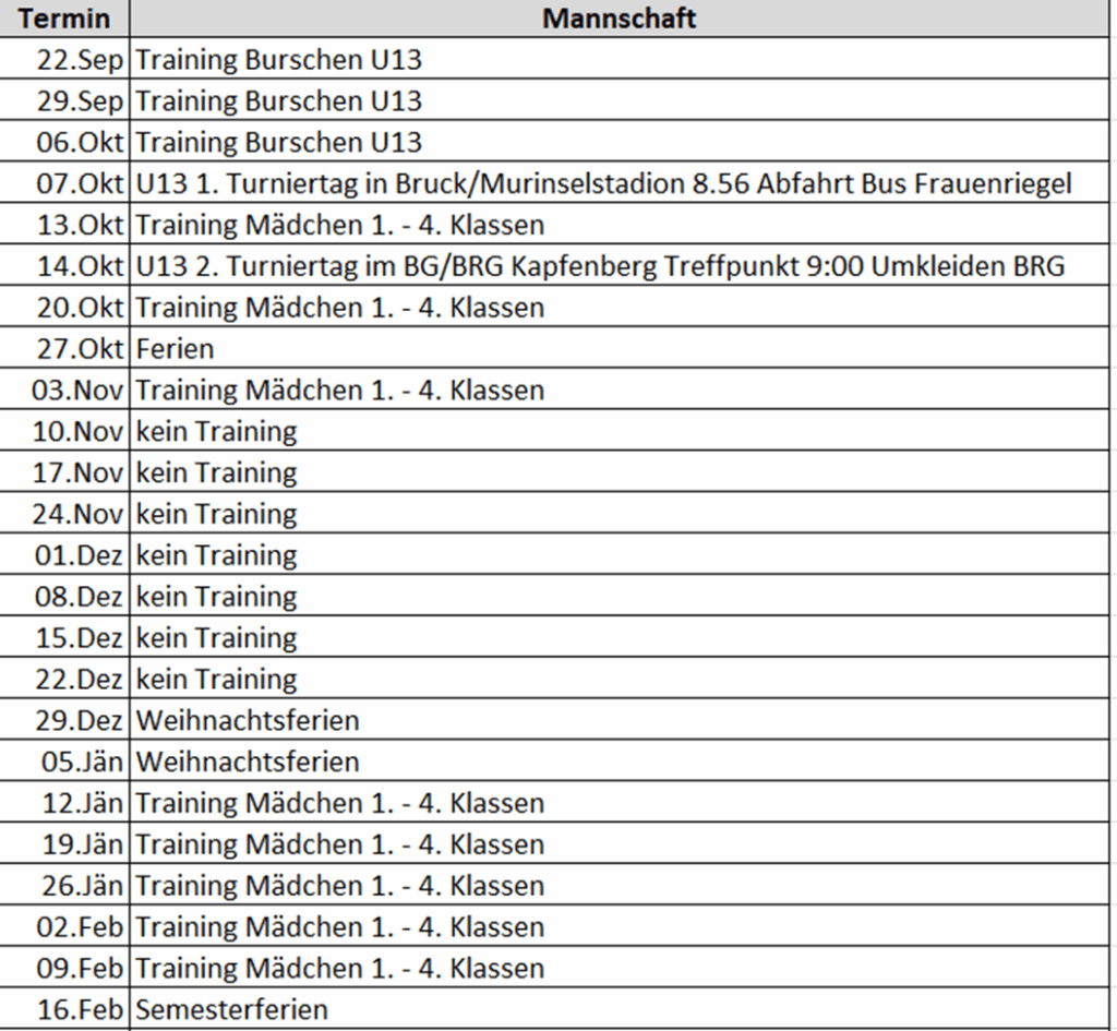 Termine 1. Semester